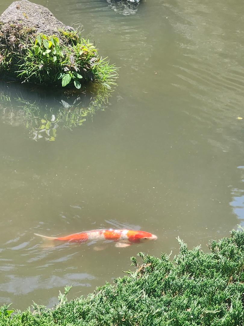 4. The atmosphere is very peaceful, especially the garden. There is a pond, trees, and stone paths that make for a calm environment. It is a nice break from being in a busy city or your daily work life. You can sit near the pond and feed the koi fish or walk a little into the woods and discover a Buddha statue.